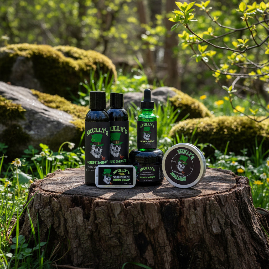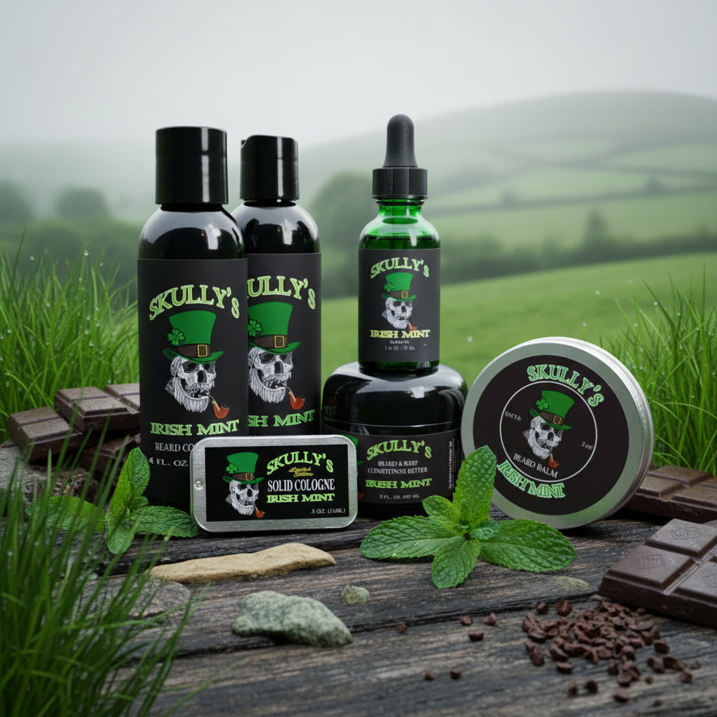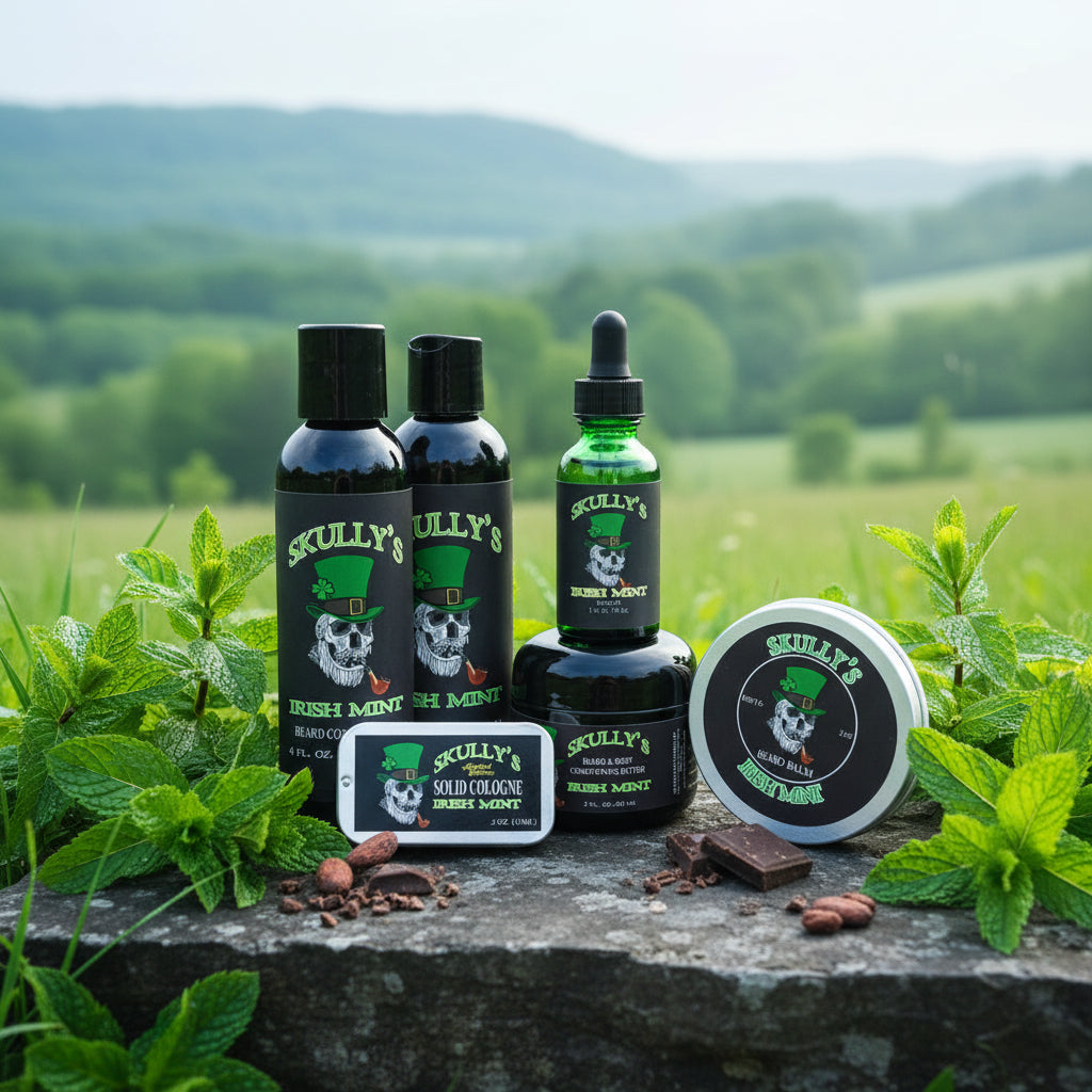 Product image 2Collection of Skully's Irish Mint beard and body care products on a white background